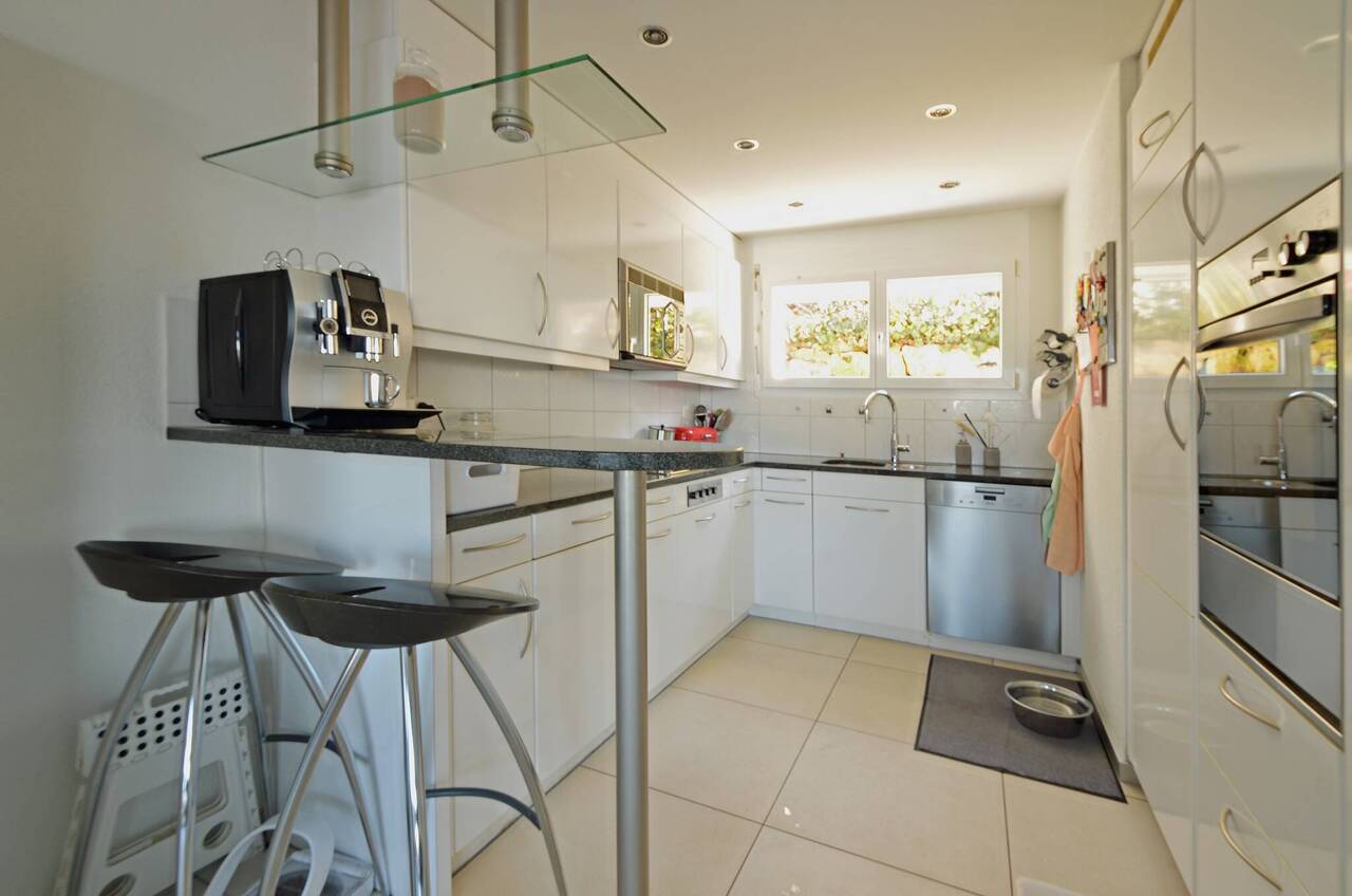 Die durchdachte Architektur nutzt die sonnige Hanglage optimal aus und schafft helle Räume, ebene Aussenflächen sowie ein hohes Mass an Privatsphäre. Bereits beim Betreten des Hauses zeigt sich die Grosszügigkeit: Über wenige Stufen gelangen Sie vom Entrée ins Wohngeschoss, wo ein Flur viel Platz für Ihre Garderobe bietet. Eine Gästetoilette mit Fenster befindet sich praktisch angrenzend.