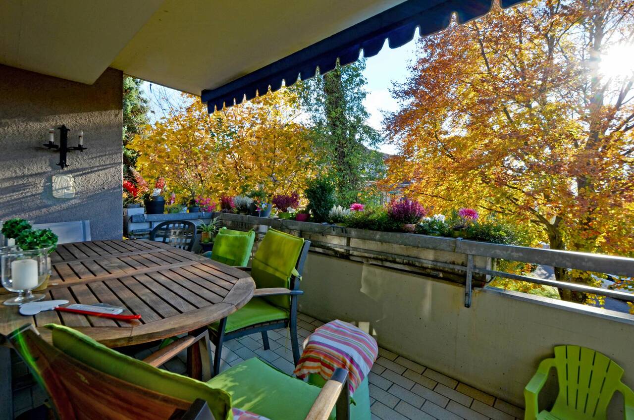 Der nach Südosten ausgerichtete Balkon bietet einen herrlichen Blick ins Grüne und lädt dank Sonnenstoren vom frühen Morgen bis zum Mittag zum Verweilen ein. Ein zweiter Balkon erweitert das Wohngefühl nach draussen und verstärkt den offenen, freundlichen Charakter der Wohnung.