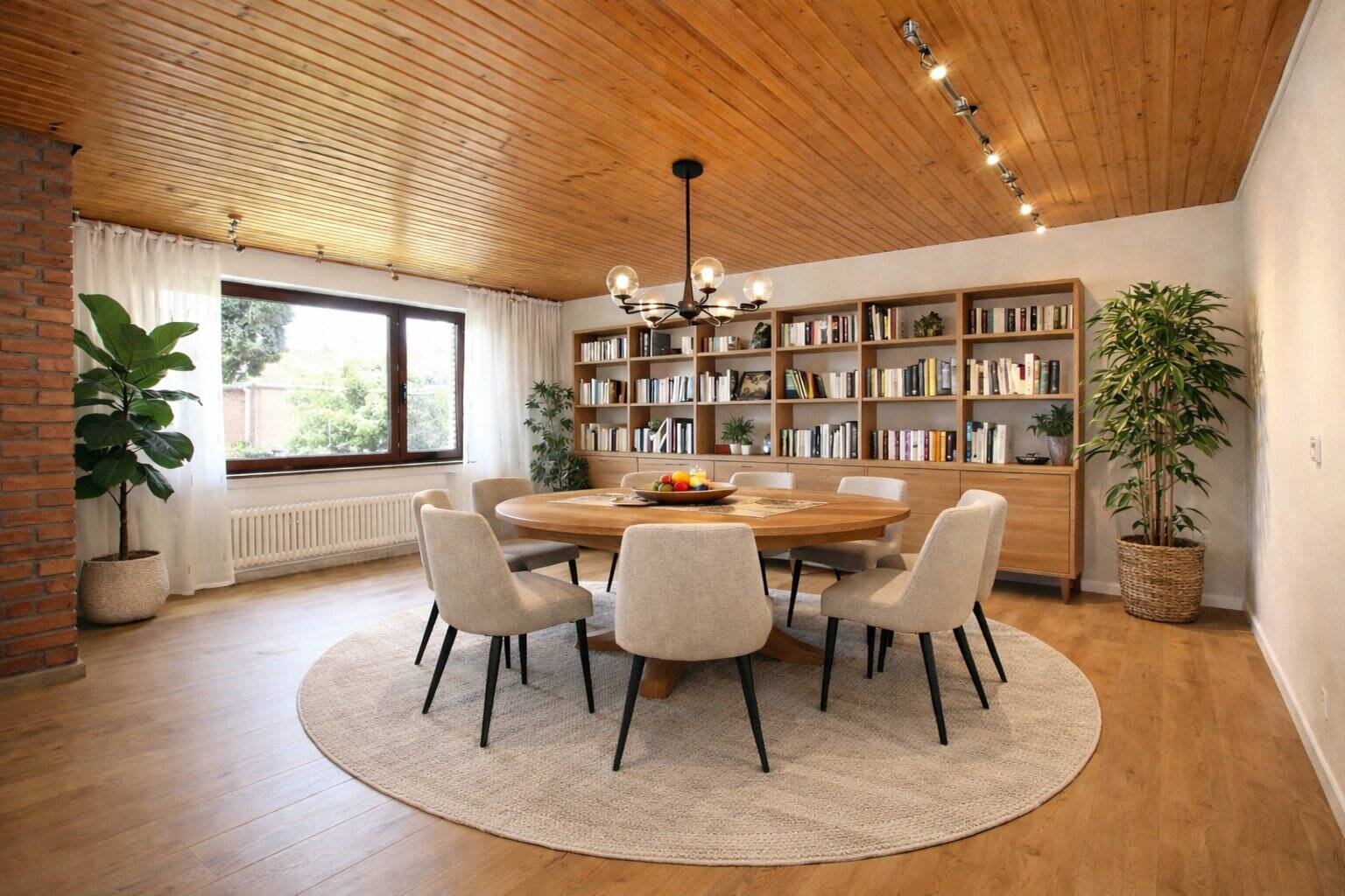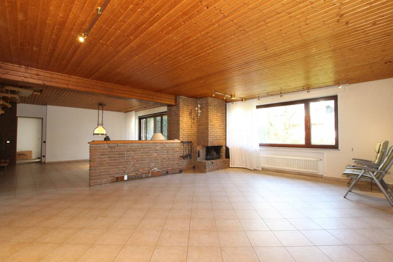 Der Mittelpunkt des Hauses ist der großzügige Wohn- und Essbereich, der mit einem offenen Kamin eine einladende Atmosphäre schafft. Von hier aus gelangen Sie direkt auf die Terrasse sowie in den Garten mit Westausrichtung - ideal für entspannte Stunden im Freien und gemütliche Abendsonne.
