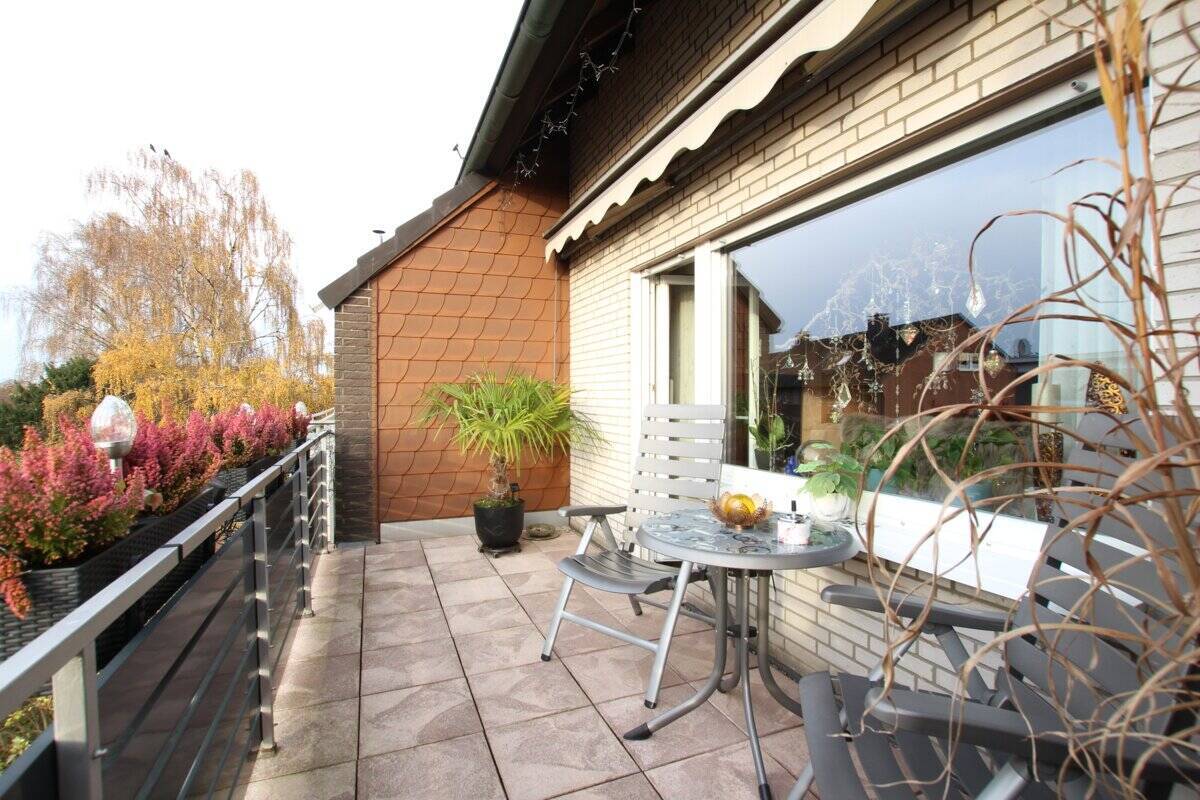 Ein großer lichterfüllter Wohnbereich mit direktem Zugang zum Balkon, die Küche mit gemütlichem Essbereich sowie ein deckenhoch gefliestes Gäste-WC befinden sich auf einer Zwischenetage sowie dem ersten Obergeschoß.