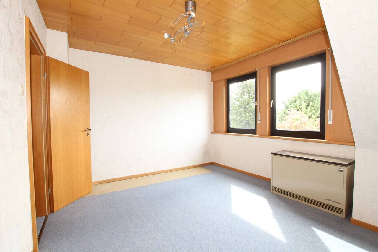 Im Obergeschoss befinden sich ein geräumiges Kinderzimmer, welches viel Platz zum Spielen und Lernen bietet. Zudem befinden sich hier auch zwei Schlafzimmer, die ausreichend Platz für ein großes Bett und einen Kleiderschrank bieten. Das Tageslicht Badezimmer ist mit einer Wanne , einem Hänge-WC und einem Waschbecken ausgestattet.