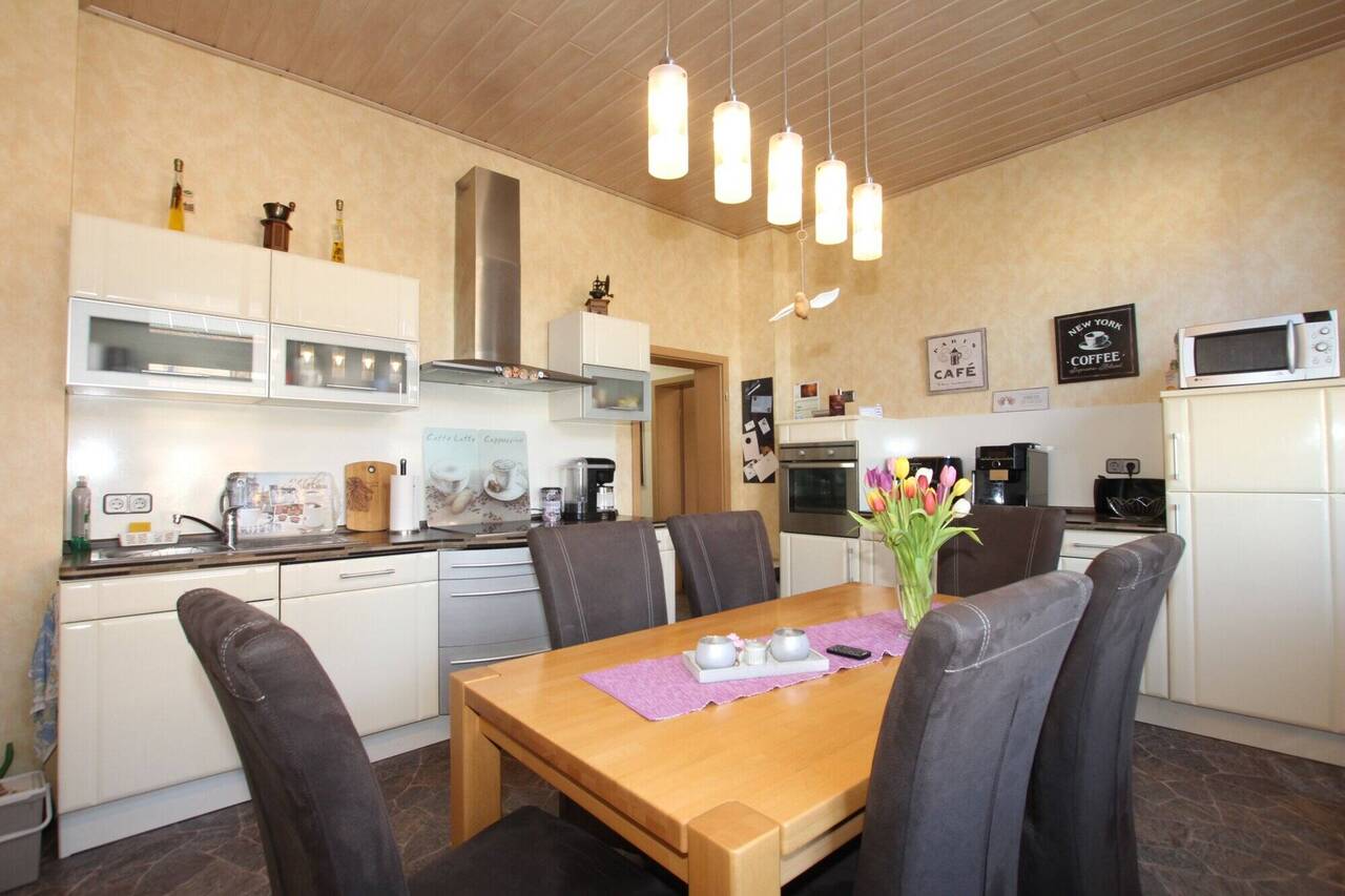 Beim Betreten des Erdgeschosses gelangt man in den Flur, von dem aus alle Räume bequem erreichbar sind. Die Küche bietet eine angenehme Größe und ausreichend Platz für einen großen Esstisch - ideal für gemeinsame Mahlzeiten. Nach Rücksprache mit den Eigentümern kann die vorhandene Einbauküche in der Immobilie verbleiben. Das gut geschnittene Wohnzimmer eröffnet vielfältige Möglichkeiten zur individuellen Einrichtung.