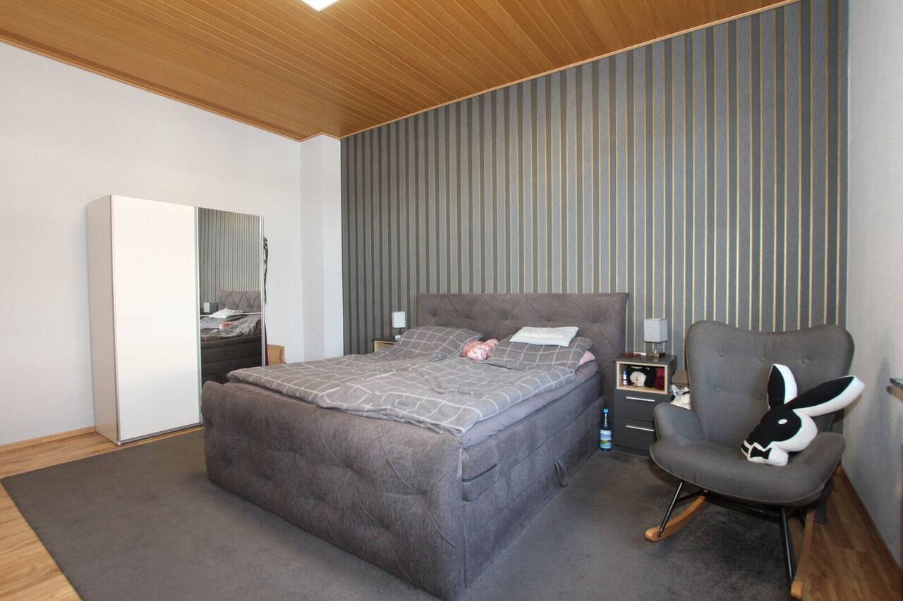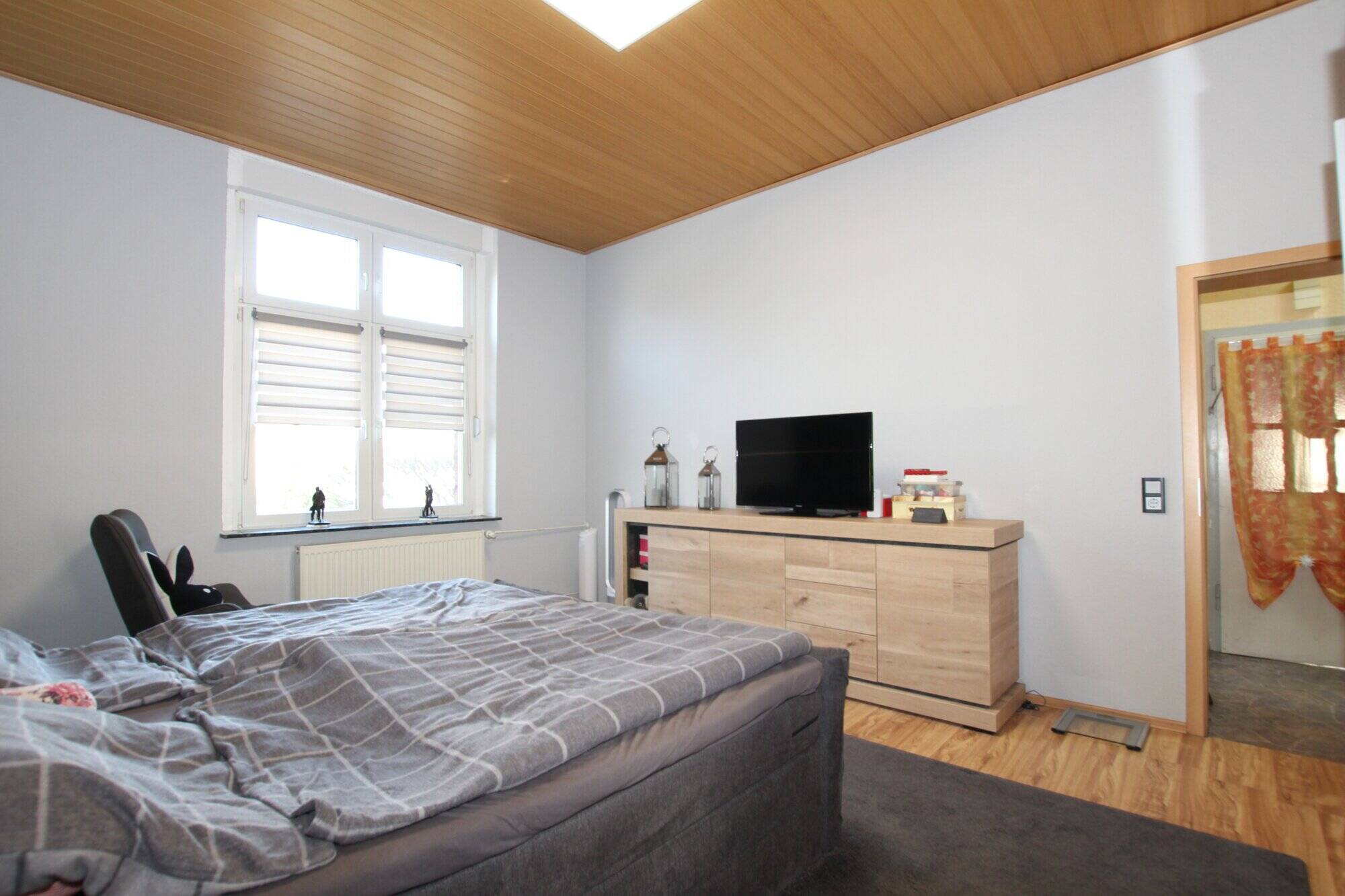 Das Schlafzimmer ist ebenfalls hell und gut geschnitten und eignet sich ideal als ruhiger Rückzugsort. Ergänzt wird die Etage durch einen weiteren Raum, der flexibel als Kinderzimmer, Büro oder Gästezimmer genutzt werden kann. Ein kleiner zusätzlicher Raum bietet sich perfekt als Ankleidezimmer an und sorgt für weiteren Stauraum. Das Tageslichtbad ist mit einer Dusche, einem Hänge-WC sowie einer Handtuchhalterheizung ausgestattet.