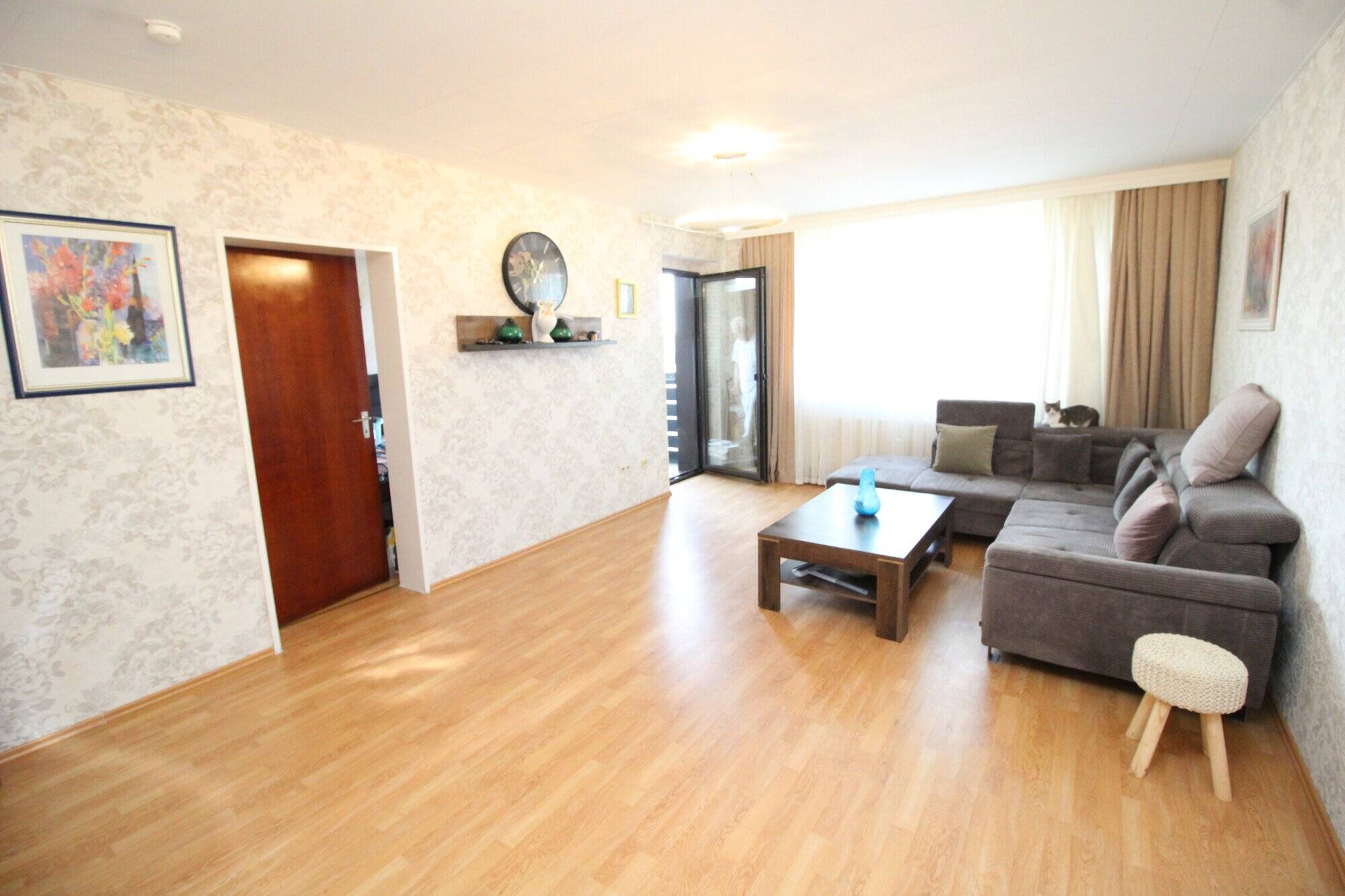 Vanuit de woonkamer bereik je een slaapkamer en een balkon van ongeveer 8 m² met uitzicht vanaf de 6e verdieping.