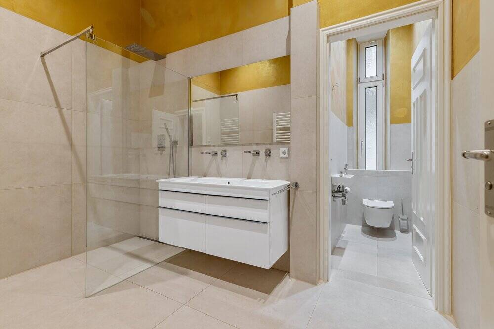 2 Bäder: Hochwertig ausgestattete Bäder mit modernen Armaturen und edlen Materialien.