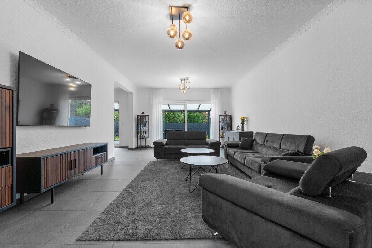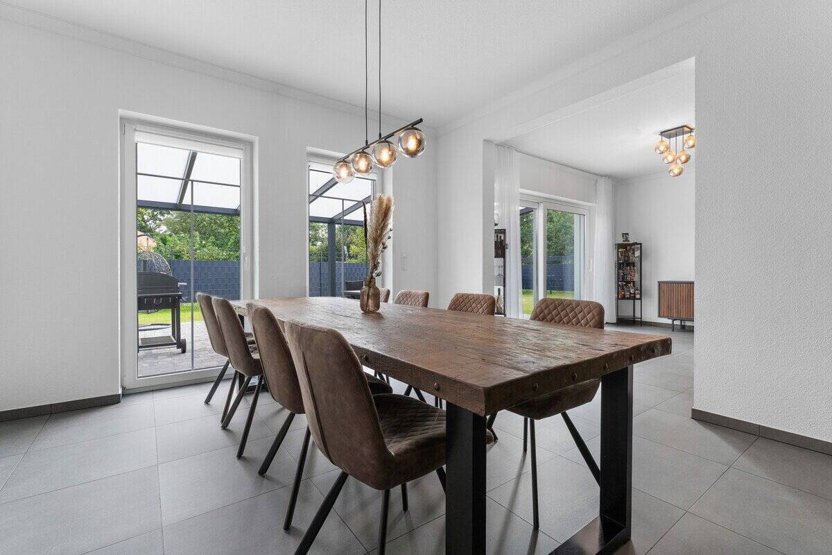 - Offener Wohn-/Essbereich mit großen Fensterflächen