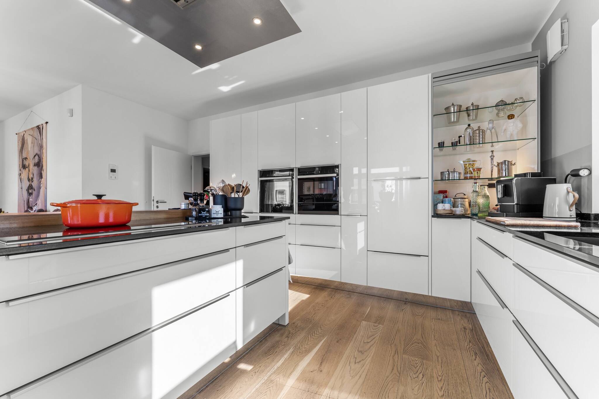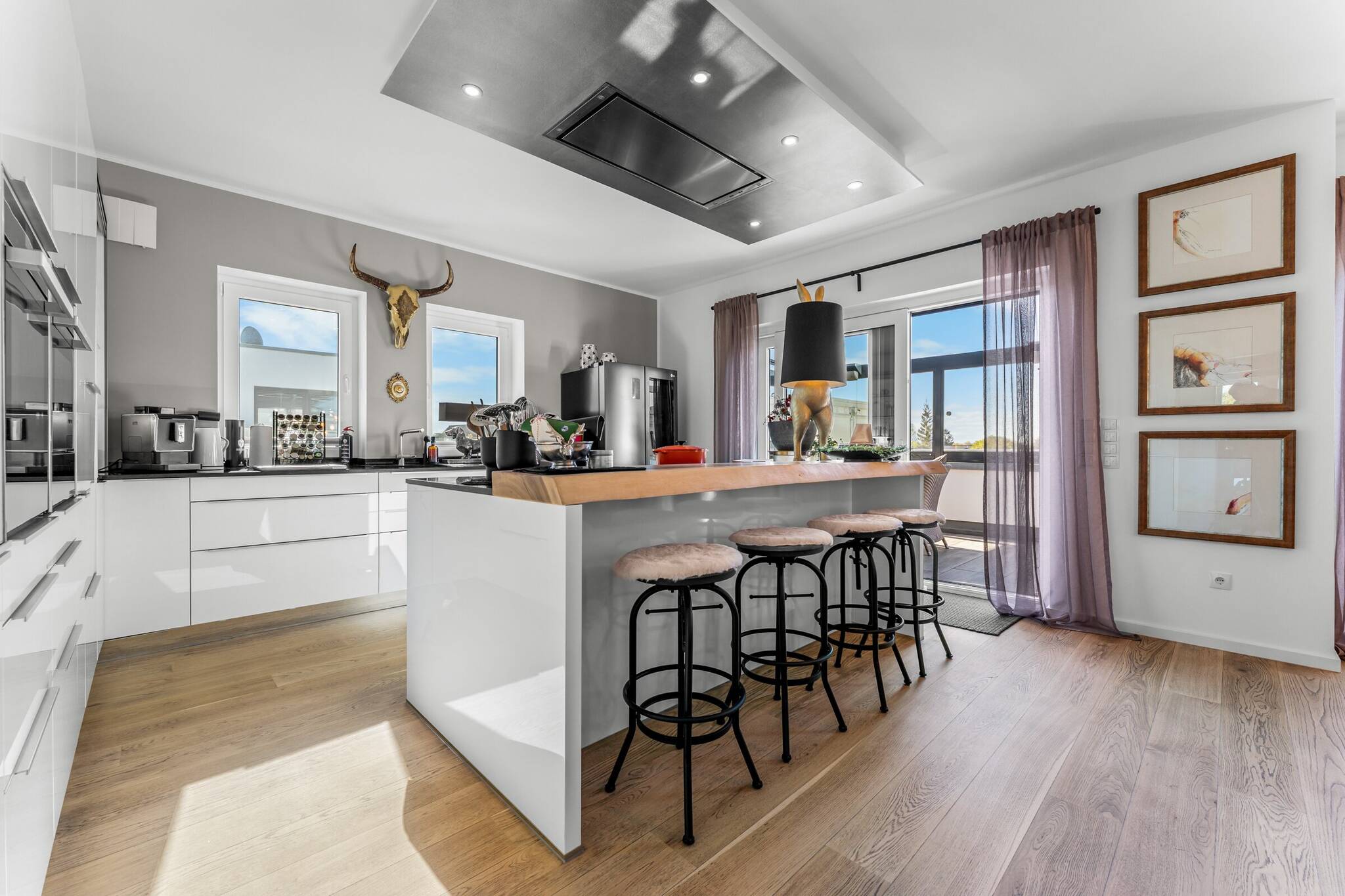 Dieses ca. 165 m² große Penthouse aus dem Baujahr 2018 bietet großzügiges Wohnen mit besonderem Komfort und einem durchdachten Grundriss. Herzstück der Wohnung ist der offen gestaltete Wohn-, Ess- und Kochbereich mit direktem Zugang zur ca. 18 m² großen Dachterrasse. Große Fensterflächen sorgen für ein helles Wohnambiente, während die Küche mit Kochinsel und der Gaskamin dem Raum eine besondere Atmosphäre verleihen.